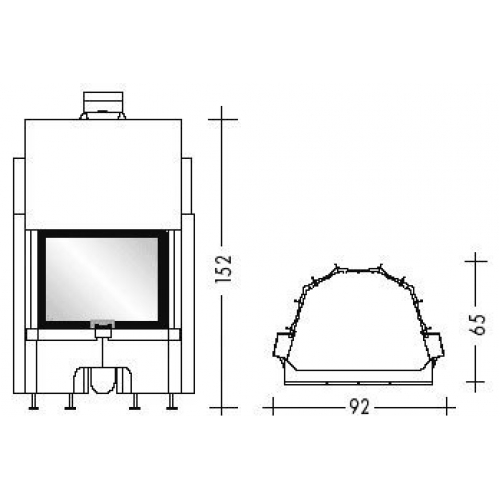 Дровяная каминная топка с металлической структурой и очагом из огнеупорной керамики. Топка с высоким КПД и низким показателем выброса продуктов горения в атмосферу, характерен сниженный расход топлива и всегда чистое стекло. Модель с плоским стеклом и лифтовым подъемом дверцы.