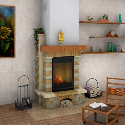 Притопочная и надтопочная часть выполнена из шамота песочно-желтого цвета. Каминная балка, изготовленная из МДФ и шпонированная дубом, послужит отличной полкой для каминных аксессуаров. В нижней части камина расположена удобная ниша для хранения и сушки дров.